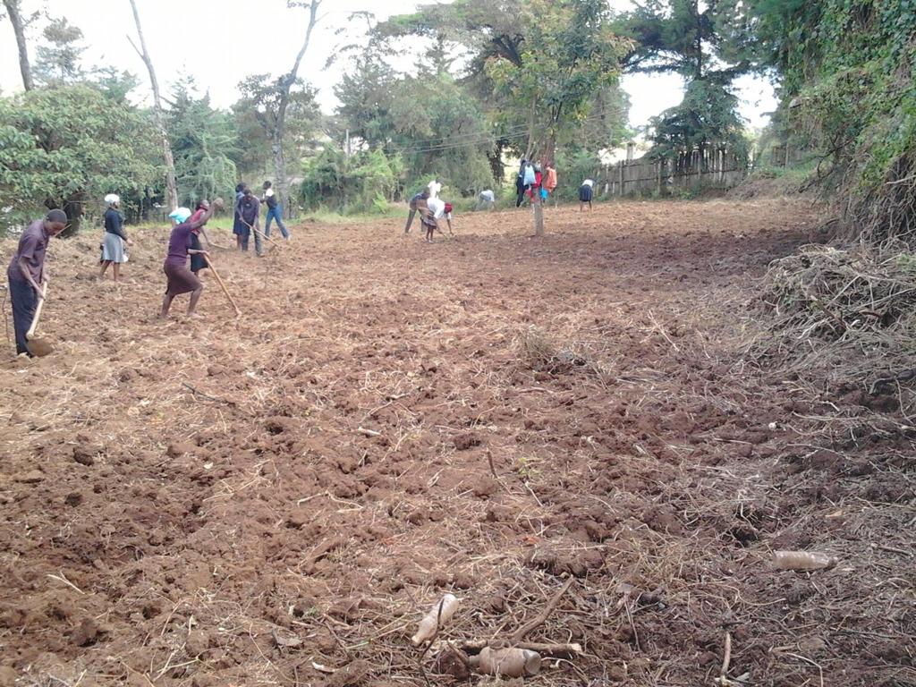 Egerton University students preparing a vegetable garden